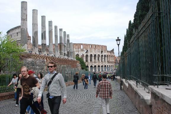 从古罗马的废墟走上来,就可以看到著名的斗兽场了。
