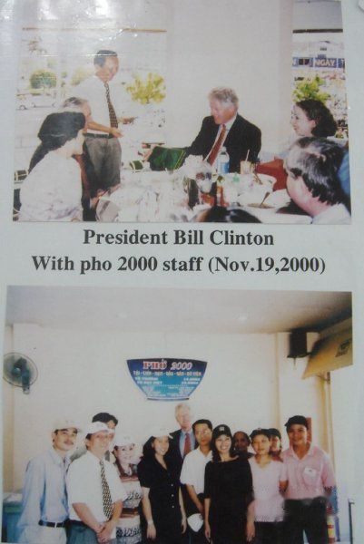 Pho2000的菜单中就有克林顿吃饭的照片作为招牌!