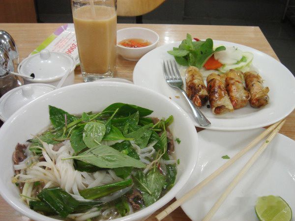在Pho 2000点了一碗牛肉粉23000Dong,1份炸虾卷22000Dong,1杯人参果奶昔14000Dong(喝起来觉得是柿子汁)。