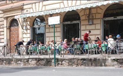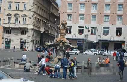 据说罗马有三千多个喷泉,这是街边路过的一个。池边的人们在悠闲地晒着太阳。
