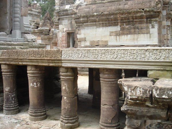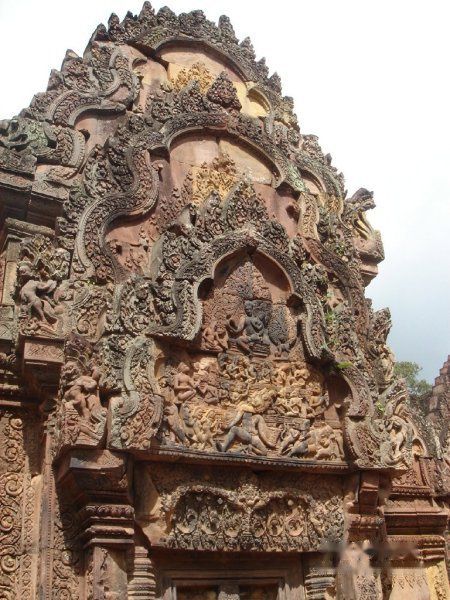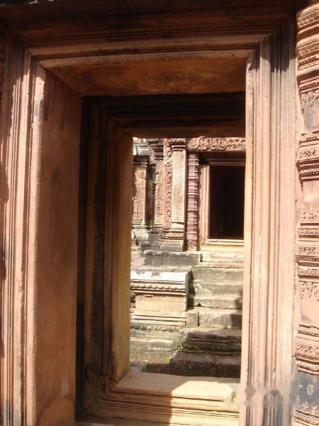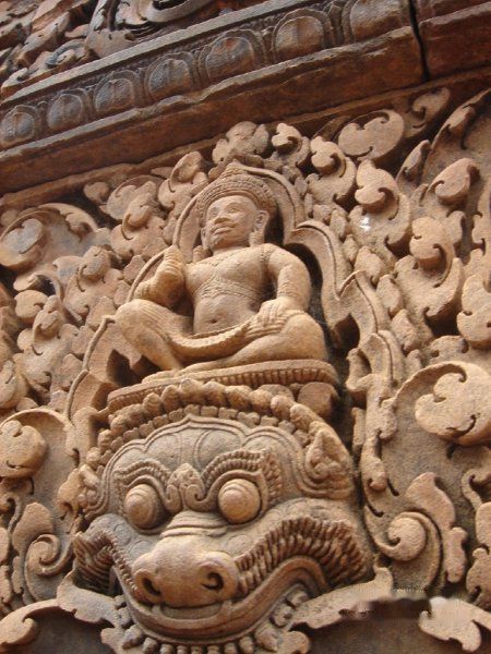 规模不大,但是雕刻是出奇的精细。曾听见有人感叹,古时候的柬埔寨人估计太没有事情做了,专门整天做雕刻。但是这里用来建筑的石头听说是用红色的火山石,红红的建筑吸引着众多游客纷至沓来。