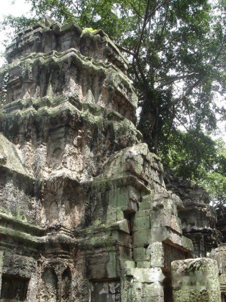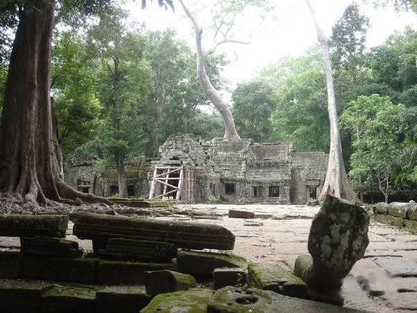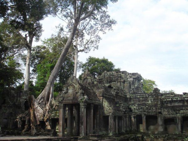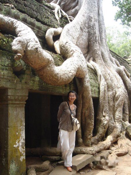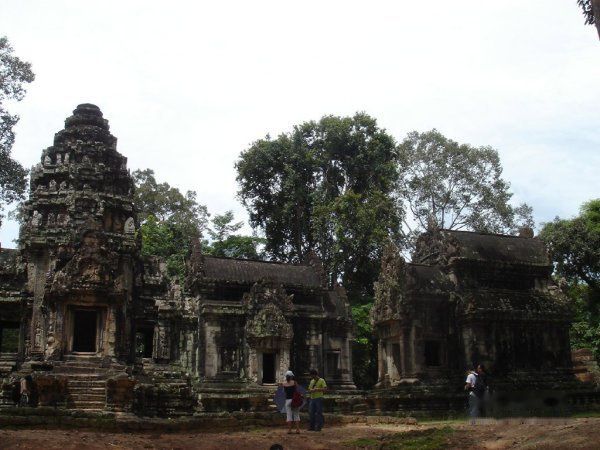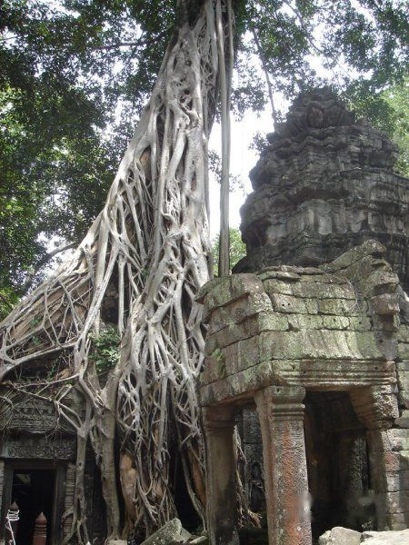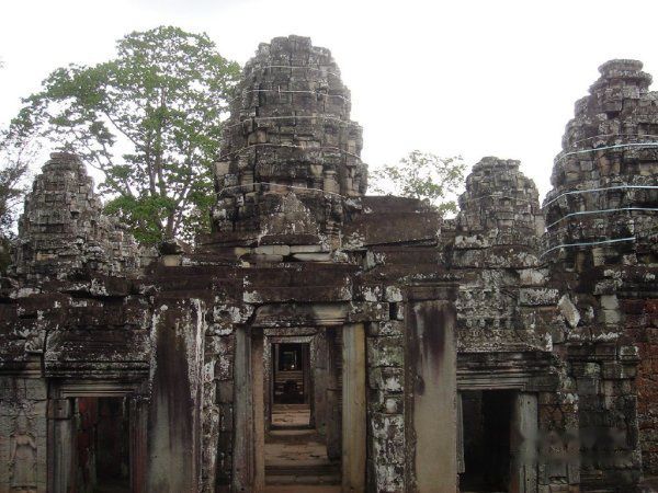 AM11:40离开,AM11:55到达塔布茏寺 Ta Prohm的东门。这就是电影古墓丽影的拍摄地。因为是皇帝专门为他母亲修建的,所以称为母寺,这里的树木花草就比其他的地方长势更旺盛。蟒蛇般的树木缠绕着里面的建筑。可谓奇观吧!