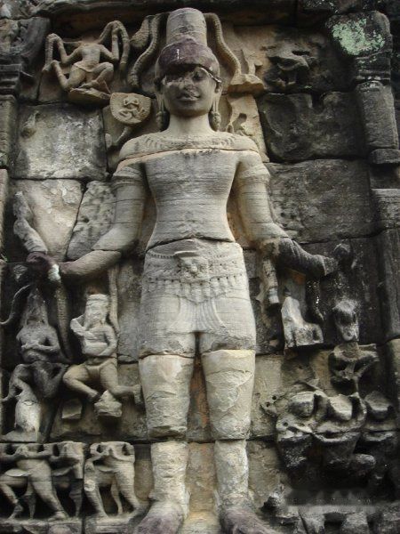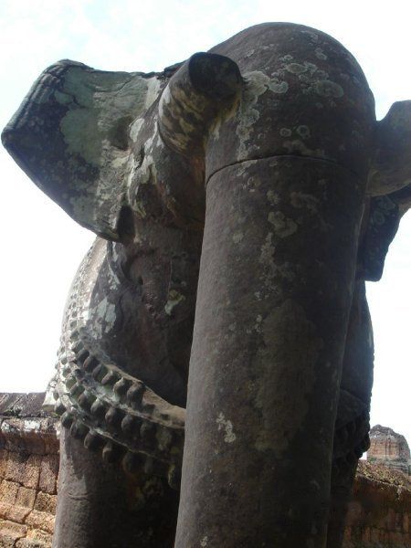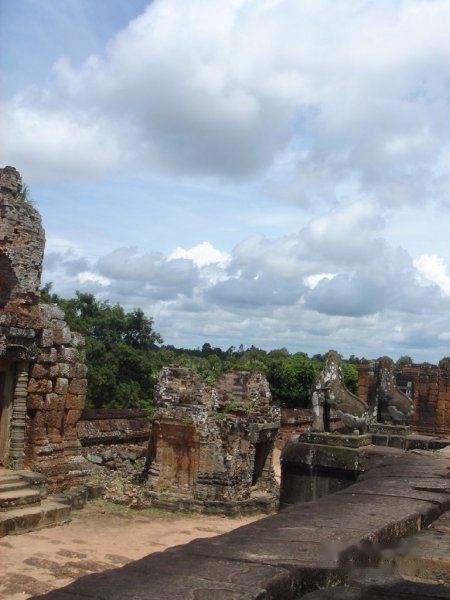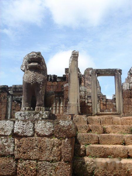 AM10:00 离开,终于摆脱了人潮,于是向南行返回吴哥城。AM10:35 到达东梅奔 East Mebon。这里有很多的大象的雕像,是祭奠大象为主的寺庙。