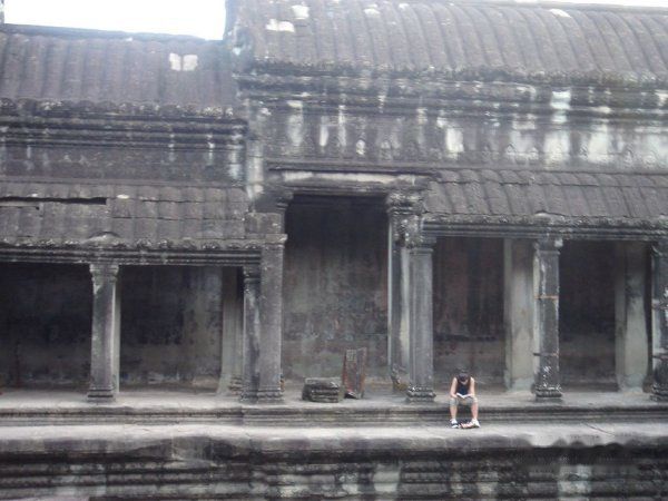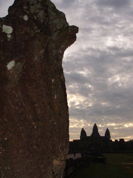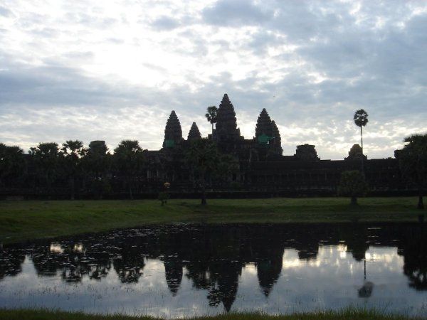 07-9-27 AM4:30起了个大早,为了是赶吴哥窟的日出。计划是骑自行车游吴哥的,结果附近没有租自行车的。虽然Ivy 2黑板上面有这项服务,可是也已经取消了。看来还是功课没有做好。于是只好在街上找了个摩托Moto,谈好价格包括去女王宫Banteay Srei 一共USD$12.00便直奔吴哥窟Angkor Wat。AM5:30开始进入,等待日出。