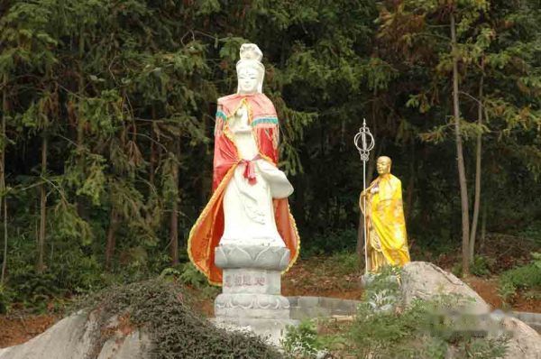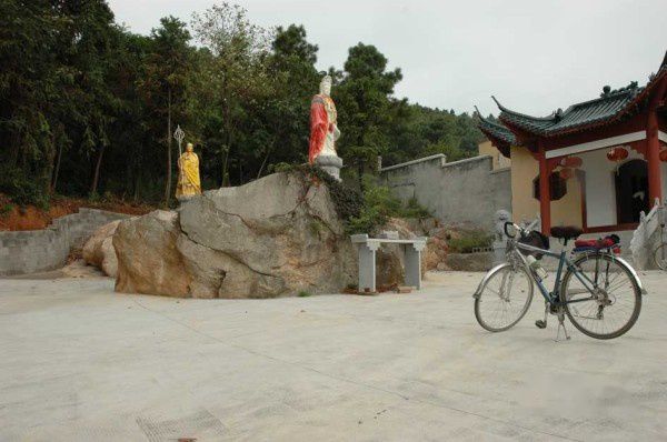 沿着公路不到1km,路边出现上山的小路,这是庙里的主持专修的一条水泥路,看来庙里的香火不错,虽然山并不高,还是在推车上山时弄得气喘嘘嘘。