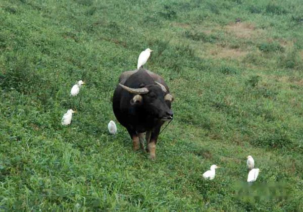 回程没有再走漳河大埂,而是过铁路峨桥,在离开漳河大埂时猛一回首,看见一牛七鸟在为我送行。