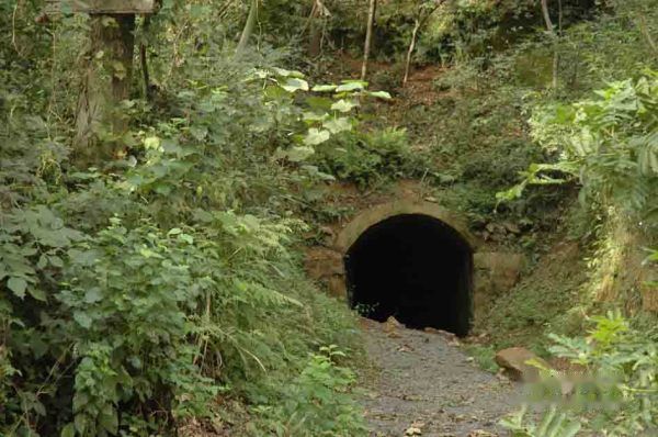 一个小孩说前面有个响水洞,沿着水塘前的小路继续推车向前,这条路是前年勘探时推出来的,勘探时还挖了一个山洞,这个山洞就是小孩说的响水洞,挖在响水涧山沟的旁边,小孩坚持要带我上山,看着他光着脚没有穿鞋,最后只能谢绝他的好意。