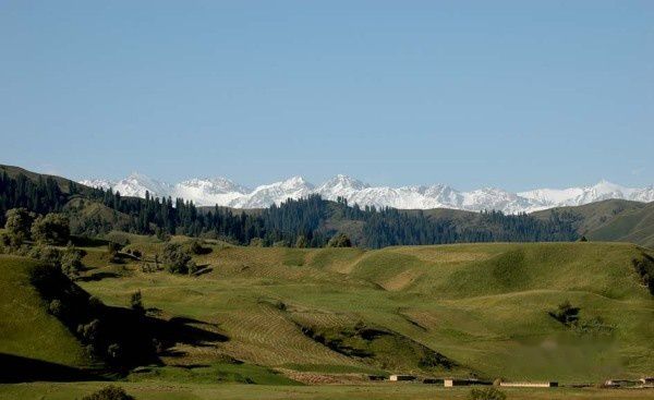 在新疆游走是一件很惬意的事,从伊犁就可以前往那拉堤草原,这里是天山南脉的山川,往往路途中的感觉比到达目的地更好,因为有随处可见的草原,树林和村庄在天山的衬托下更加明媚爽朗。