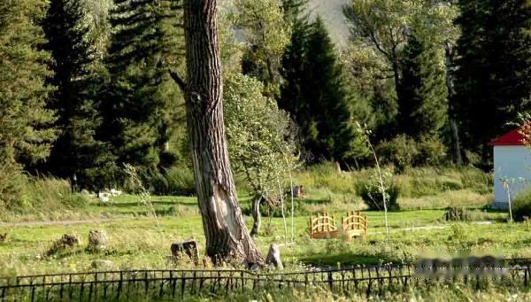 漫步在那拉堤的林中小道,西疆的森林比北疆更加多样,这里的树木不仅高大而且粗壮,想必是水土更加适合植物的生长。林中有蜿蜒的水道是山上溪水在向下面的巩乃斯河汇集,溪流上的小木桥时隐时现地横穿路间。