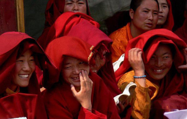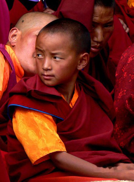 最有趣的是在五爷庙的东面有一个不大的空场,每天在空场的两侧都聚集了众多从各地来朝拜的僧人,西面全是一色红衣的喇嘛,东面则是衣着或黄或灰或黑僧衣的和尚,而且两边男女都有。所有僧人表情欢快、情绪高昂,各自用不同的方式和语言高声诵读经文,大有很多少数民族赛歌的气势,引得游山的人群纷纷驻足拍照欣赏,可算得上是五台山的胜景之一吧。