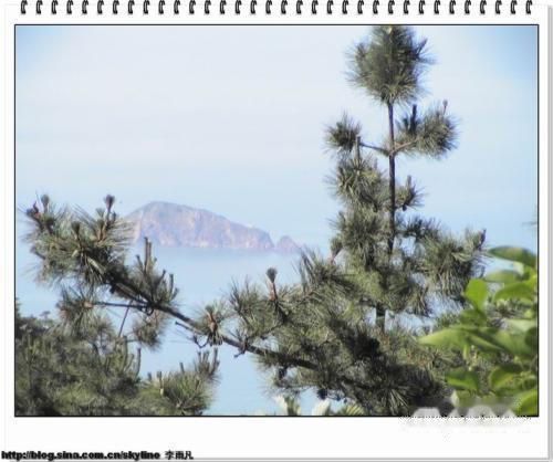 走到半山,回望大海,在树的枝桠间能看见海面上的海岛。