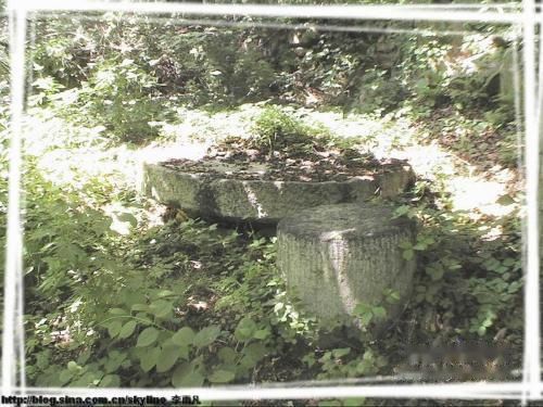 时间还早,下山,先到先天庵。发现了碾盘。先天庵的桌子是前年和久久,云溪子一起走这条路时给拼起来的,现在看来,桌子保存还好。只是,周围的垃圾多了。有点无奈的感觉。废墟上还有一棵大的银杏树。是雄的,另一棵雌的已经不知在什么年代被砍了,或者是自己死掉了。只留下一个很大的树盘。树盘的周围已经生出来几株大树,有两棵有很多枝桠,有趣的是主要枝桠的样子和形状很是相似,就像双子的姊妹一样。