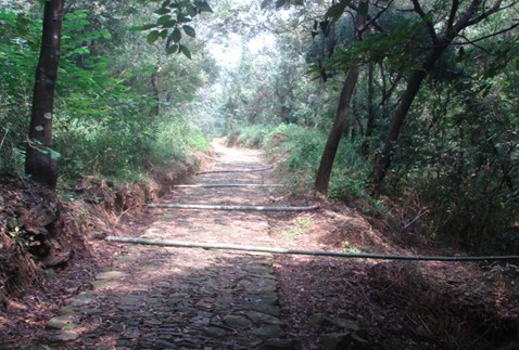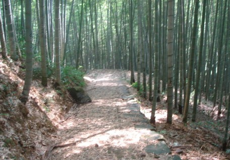 张家岭古道是连接象峰村、东山村和横溪、奉化的交通要道,有几百年的历史了。古道近期经过修理后很平整,可以算得上古道中的高速公路,山顶上的张家亭也重新盖的,有休息坐椅和厕所。真是个爬山的好地方。