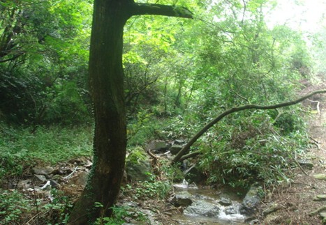 大树横在古道上,挡住去路。几十年长成的大树,小毛栗还长在树上的栗子树。半小时到张家岭的顶,张家亭在岭顶。沿着古道下去,是象峰村。往右一拐,离开古道,沿山脊的小路往东山方向走。