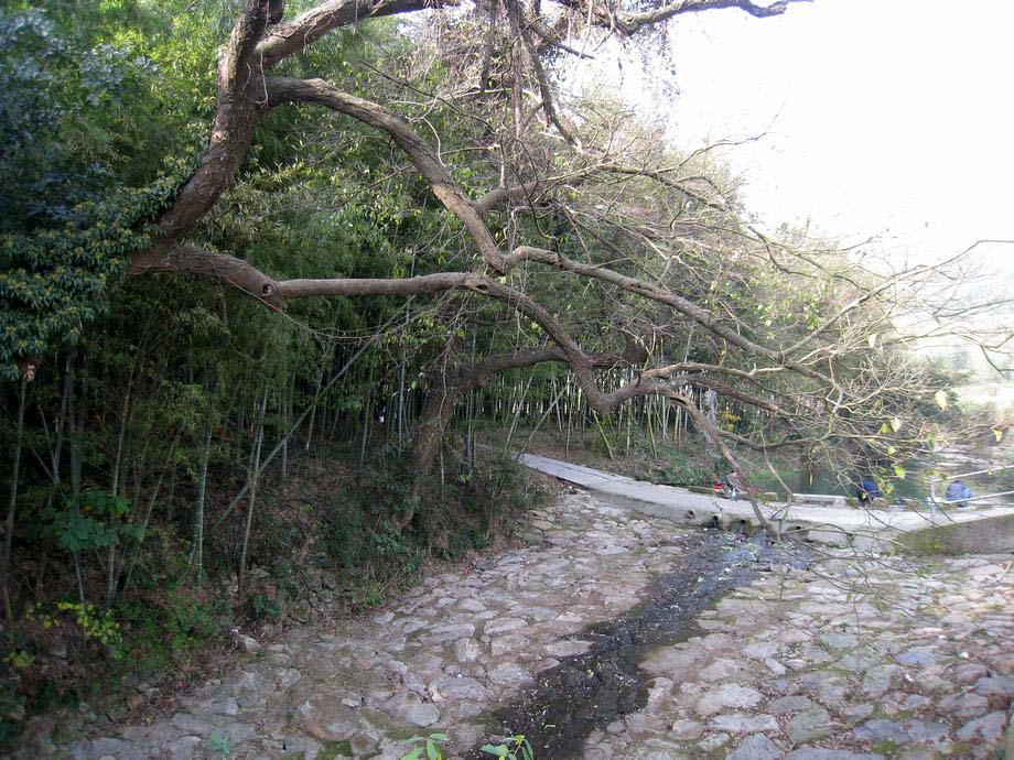 竹马岭古道从鄞州区横溪镇芦花桥村至奉化白杜山厂村的山路。乘111路到横溪镇下车,然后611到芦花桥村。全程攀登时间约需要70分钟。进入竹马岭,路边是淙淙小溪,溪旁杂树野草丛生。