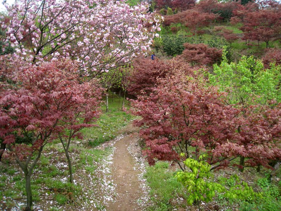 兰田到商量岗的山道位于奉化市溪口镇兰田村到商量岗之间的山林中。从兰田村开始沿着半山腰蜿蜒曲折而下到商量岗的山道。春天穿越兰田到商量岗的山道上,巨石、溪流、瀑布和令人陶醉的各种各样的鲜花确实美丽。四周群山环抱,适宜于春秋冬季攀登。