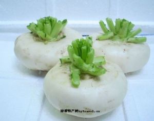 盘菜,学名芜菁,又名蔓菁,块茎类植物,因形似盘状,故俗称“盘菜”。盘菜根如圆萝卜,盐腌晒干作咸菜名梳菜。华东一带通称香大头。芸薹属芸薹种芜菁亚种能形成肉质根的二年生草本植物。学名BrassicacampestrisL.ssp.rapiferaMatzg(syn.B.rapa.L.),别名蔓菁、圆根、盘菜等。染色体数2n=2x=20。肥大肉质根供食用,每100克鲜重含水分87~95克、糖类3.8~6.4克、粗蛋白0.4~2.1克、纤维素0.8~2.0克、维生素C19.2~63.3毫克,以及其他矿物盐。肉质根柔嫩、致密,供炒食、煮食或腌渍。欧洲、亚洲和美洲均有栽培。 内容来自 BNBVISTA.COM