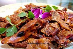 取上等山药洗净上笼蒸熟,趁热剥去外皮,滚刀切成不规格状备用,将上奉板鸭斩成2~3厘米小块,置冷水浸泡24小时,取出后滤去水与山辣、姜未、料酒同倒锅中炒过,加水置瓷钵中细火慢炖,炖滚后再倒入切好的山药继续炖至肉烂。起锅时试味再酌情加适当佐料。