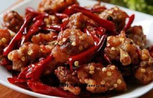 材料:鸡肉 250g ,油 300g ,四川泡椒 30g ,干辣椒(朝天椒最好) 150g ,花椒 50g ,料酒 20g ,酱油 20g ,味精 5g ,盐 15g ,四川麻辣酱 30g ,葱姜少许。