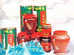 “惟一斋八宝豆鼓”是用大黑豆、茄子、杏仁、鲜姜、紫苏叶、花椒香油、白酒等八种原料经一年密封天然发酵而成。豆鼓色泽晶莹、香味独特、营养丰富、有生津开胃、降逆消食的作用。费孝通先生题词赞誉“齐鲁名产,醇厚清香”。