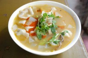 洛宁人大年初一第一顿,就是凉粉饺子。传说是以前饺子不够吃就添加了凉粉增加份量,现在已经成了别有风味的洛宁小吃。凉粉有清凉粉和黄凉粉,清凉粉是淀粉制成,黄凉粉是玉谷面制成。凉粉饺子汤里,除了凉粉饺子外,还可以加入肉和菜类。一家人热热呵呵在一起,香喷喷地吃上一顿初一饭,那是圆满。客人来了热腾腾地端上一碗凉粉饺子,那是一份亲情。