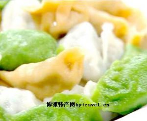 神仙饺以面粉制片皮,用猪肉配大葱、白菜或韭菜作馅。饺馅掺兑鸡蛋、香油等调拌,再用面皮包捏成饺,其形似猫耳,又称猫耳饺。此饺皮薄馅嫩,以清水或鸡汤煮熟,兼有水饺和混饨之美味。俗称神仙饺。