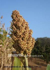 高粱,禾本科,高粱属。1年生草本。秆实心,中心有髓。分蘖或分枝。叶片似玉米,厚而窄,被蜡粉,平滑,中脉呈白色。圆锥花序,穗形有带状和锤状两类。颖果呈褐、橙、白或淡黄等色。种子卵圆形,微扁,质粘或不粘。性喜温暖,抗旱、耐涝。按性状及用途可分为食用高粱、糖用高粱、帚用高粱等类。我国栽培较广,以东北各地为最多。谷粒供食用、酿酒(高粱酒)或制饴糖。糖用高粱的秆可制糖浆或生食;帚用高粱的穗可制笤帚或炊帚;嫩叶阴干青贮,或晒干后可作饲料;颖果能入药,能燥湿祛痰,宁心安神。