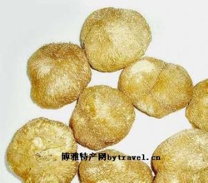 系稀有山珍。个大、肉厚,菜肴佳品。制成猴头菌片,还可作预防胃癌、食道癌。产于鲁山县。
