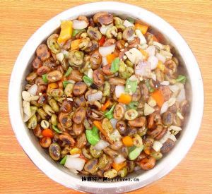 做这道菜时,要注意一点:豌豆不要炒糊,时间也不能炒短,否则豌豆是呷生半熟的,屁多,火候一定要把握好;佩豌豆时,水不要溅入锅里,锅会浸破的。 天下民宿