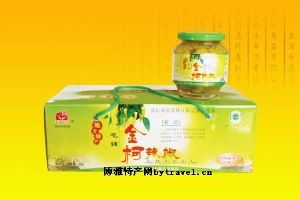 金柯辣椒:产于湖北大冶市南部高寒山区金柯村,该地空气清新,无工业污染。产的辣椒个大肉厚,清脆爽口,再加入该地山泉精心泡制而成。成品色泽黄亮、解腻开胃、肉质厚实、清脆爽口、堪称一绝。