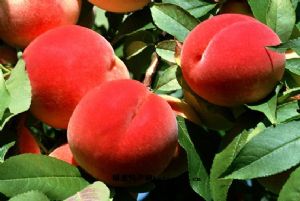 红不软桃 8月中旬成熟。高桩平顶,全身鲜红,俏丽非凡。成熟后桃面光滑,茸毛短而稀少;硬溶质,货架期长,常温下可放20d,树下不摘,可卖40天;浓甜芳香,汁液中等,白肉细腻,品质极佳、离核,核小,含糖量16%;果个大,单果平均300g,最大超过800g,自花授粉,极为丰产。