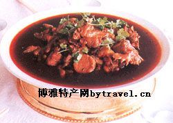烧鸡公是火锅家族中又一新秀,它与传统的火锅烹制方法大相径庭。它是把土公鸡宰杀后切块码味,然后入锅辅以调味品炒香,再入压力锅烹制,最后换锅加入火锅汤汁上桌,此时鸡肉已熟粑;二是在火锅汤内加有油酥黄豆;三是在鸡肉吃完后可加烫其他荤素菜品;四是一般不用油碟调味。此菜麻辣味鲜,鸡块粑糯,汤汁红亮。 内容来自 BNBVISTA.COM