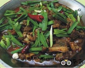 此菜鸭血褐黑程亮,黑里透红,味香辣,肉鲜嫩,油重抱芡,咸鲜适口,佐酒下饭均宜。 天下民宿