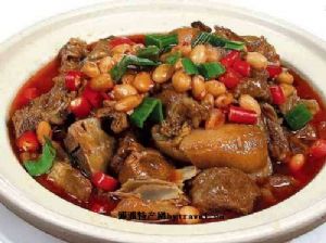 观澜狗肉颇俱特色,是广东各种菜式中的名饌之一。以狗为肴历史长久,《祀记.胎》篇载:"孟秋之月……天子食麻与犬。"两汉讨,食犬之风遍及雨北,味在羊、豚之上。在岭南地区的潮州梅州、宝安(今深圳市)、广州等地,食犬之风长盛不哀,一直奉为什行美食。古人认为夏至食犬消灾祛病,故有"以至狗,没得走"的谚语。因狗肉性热,故夏至食狗现在只有客家人风行。多数地区视狗肉为冬令补品。狗肉集羊肉之脆嫩,兔肉之香醇,鸡肉之鲜美为一体,营养滋补,具有强身健骨、祛病延年之功效,故有"十二月吃狗肉,六月见功"的说法。观澜狗肉店四季生易火暴,多为客家人经营。观澜狗肉有热菜和冷盘之分。热菜以狗肉为主料,辅以近20种佐料烹调而成,主要有生狗肉、原煲狗肉、清蒸狗肉、红烧狗肉、爆炒狗肉,狗肉九子,狗肉羹等;冷盘主要有狗杂、白切狗肉等