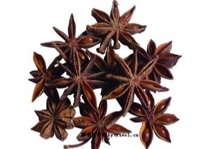 茴香,又名大茴香,俗称八角。木兰科常绿乔木,全身有香味。果实为8~9个木质蓇葖,轮生呈星芒状,红棕色。果、叶经蒸馏提取香料,名为“茴油”,是高级食用香精及化妆品不可缺少的原料,也是制药工业的重要原料,是靖西的传统出口商品。早在清光绪年间就有县人组织和利公司和同德公司,在五岭和龙邦一带立案垦荒种植八角。民国时期年产八角约2.5万公斤, 茴油5.5万公斤。解放后最高年产量为1974年产八角11.45万公斤,1978年产茴油4.1万公斤。1990年全县有八角林1.4万亩,产八角0.36万公斤,茴油1.16万公斤。产地主要分布在魁圩乡的扶赖、驮林、那多、那些村,岜蒙乡珍邦、新邦村,武平乡安本、立禄村,同德乡足表、意江、七联、果老村,湖润镇更村等地。这些村大多靠近德保县,产品往往就近销往德保。