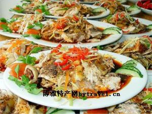 里当鸡质优名贵,得益于独特的地理条件和饲养方法。主产区总面积约13万公顷,属典型的喀斯特地貌。产区农民在沟谷中依山傍水分散居住,每户养有3至5只母鸡,自繁自育,品种不受外来基因混杂。产区农作物以玉米、高粱为主,辅以红薯、豆类、花生、火麻和蔬菜,这些都是里当鸡的主食饲料。加上自由放养,里当鸡饲养成本低,鸡身壮实。 熟的里当鸡表皮纯黄而不沾水滴,皮下一层薄薄的黄色脂肪欲渗皮外,晶莹透亮,切块装盘缀上香菜,观其色,闻其香,品其味,令人胃口大开。 Copyright BNBVISTA.COM