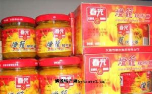 黄灯笼辣椒酱很有名,喜欢吃辣的人不要错过,有香辣和特辣两种,根据自己的口味选择。一般普通的超市里都有卖。