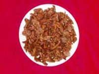 将胡萝卜用小刀刮成茸泥,然后配以猪肉茸、鸡蛋,经过炸、烧烹制成菜。其成菜色如珊瑚,酥软味美,爽口化渣,具有鲜明的乡土风味特点。