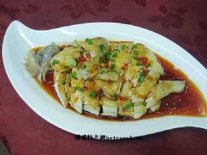 3)捞出擦干水分,去尽鸡骨,改成片、丝、块均可。郸县豆瓣剁细炒酥,糟蛋黄按成茸,加酱油、醋、辣椒油、花椒粉、白糖、芝麻酱、味精、香油混匀兑成怪味味汁;