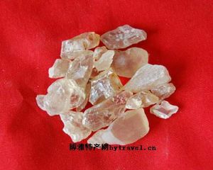 天河风景区的特殊地质构造,赋予她丰富的石材和其他矿产资源。石材最具审美价值的是色如翡翠的绿豆石,色似“中国红”的红砂石和十分珍贵的水晶石、玛瑙等。