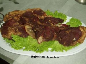 藏族喜欢吃风干的牛(羊)肉,风干肉一般在冬天,一般在十一月低做。这时候的气温都比较低,在零度以下,把牛、羊肉割下来,挂在阴凉的地方,让其风干,去出水份。藏民把牛、羊肉割成小块串上,或用竹笼挂在帐房、屋檐下的阴凉处,第二年的三月之后,将早已风干的肉取来烤食或者直接生食,咀嚼时无渣塞牙。在西藏高寒地区,食品不易霉烂变质,去水又保鲜,故时至今日,吃风干牛肉之风仍极盛行。肉质松脆,口味独特,令人回味无穷。