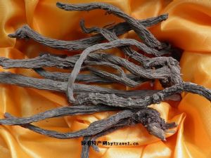 质地:条粗、质软、皮部绿褐色,根长圆柱形,略扁,微弯曲,长5-15cm,直径0.5-2cm。表面棕褐色或灰褐色有多数明显而扭曲的纵皱纹及沟纹,可见横长皮孔及少数须根痕。质稍软,久置干燥后变硬。易折断,断面不平坦,皮部绿褐色或淡褐色,木部黄褐色,常呈放射状花纹。气微香,味苦,微甜而后涩。 内容来自 BNBVISTA.COM