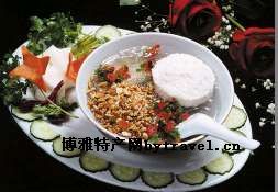 熬。用大米经淘洗、浸泡、滤水,用石磨子磨成粉,用箩筛去掉粗颗粒,将细米粉洒入少许冷水拌匀,成湿润、松散的米糕,用厚2厘米、直径7厘米的木质腰鼓形小蒸甑放入-的烧有沸水的铝锅中,直置于壶口蒸2--3分钟熟后即制成糕粑。取一大碗放入干藕粉,用少许冷水调湿,再烧沸水边冲边熬至半透明的糊状,放入白糖、玫瑰糖调好甜香味,放一块糕粑,再撒上熟芝麻和切碎的枯饼,瓜片、桃仁、果脯即成。 Copyright BNBVISTA.COM