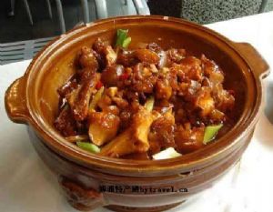状元蹄 又称“青岩卤猪脚”。据记载,1886年4月2日,在光绪丙戍年科殿试大考中荣获状元的青岩贡士赵以炯年青时常去青岩北门街夜市吃卤猪蹄。故乡人们为怀念为这位历史名人,称卤猪蹄为状元蹄。如今“游青岩古镇,品青岩美蹄”已成为当地的一种旅游文化现象。该道菜色泽红褐、皮充盈泽润、肥而不腻、味道醇厚。