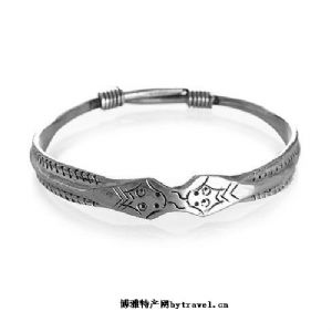 耳环、手镯、银腰带:耳环有月牙形镶嵌绿松石,垂缀形镶嵌珊瑚珠等十多种。手镯中的柳丝龙头圈,精关细巧,方形虬形镯,厚重、直朴、可爱。银腰带以五至六片不等的银片组成 ,采门圆雕,突出花纹线条等 ,图案种类繁多。 BNBVISTA.COM