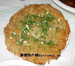 洋芋的学名叫马铃薯,俗称土豆。中医认为土豆性平,有和胃、调中、健脾、益气的功效,适用于治疗胃及十二指肠溃疡、慢性胃疼、习惯性便秘、皮肤湿疹等症。   将洋芋洗净、煮熟、剥皮、捣呈泥状,加入适量面粉制成糊,放在勺中浸泡在油锅里炸至焦黄、定型,取出后即成一圆勺状,边上较薄,中间稍厚,上面撒上椒盐和辣椒面,吃起来清香可口、微辣、兼有花椒的香味。这就是昆明街头巷尾常见的小吃摊上的洋芋粑粑。 ( 昆明)
