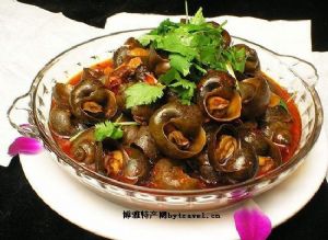 酱螺蛳 滇池盛产螺,渔民贩于市,食品小商购得,剔螺剜其肉,洗净后拌以姜、蒜、芫荽、甜酱油,甜面酱,油辣椒、花生酱、芝麻酱等出售,购食者众多。一九五○年后逐渐消失。( 昆明)