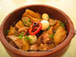 汽锅鸡是云南独有的高级风味菜,它的烹制方法特殊,鸡肉细嫩、汤汁鲜美、原汁原味、富于营养,在国内外均享盛誉。