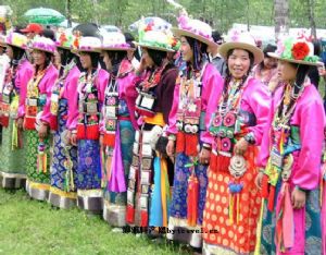 “邦典”是已婚妇女才配戴的,五彩的布条缝制而成,极像天边的彩虹。“邦典”可以说是一件精美的工艺品。和西藏地区的“邦典”相比,康巴的“布夜”就没有那么好看了,“布夜”是用黑色的布或者是黑色的缎子做成的,不管布料怎么变,颜色永远是黑的。 BNBVISTA.COM