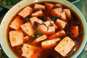 辣子豆腐的制作过和分三部分。一是油烫辣子。油要选上好的清油加适量大油,辣椒面则要选择优质色红者。先将生油煎熟,掌握好油温,再倒入辣面,搅匀,随即倒入少量食醋和酱油即可。烫辣子是制作辣子豆腐的关键环节,而关键的关键在于掌握油温。油温过低,辣子不熟,辣而不香;油温过高,辣子变黑,苦而不辣,黑而不红,大大影响效果。二是出浆豆腐。目的在于去掉豆腐中的浆味。用具以砂器为佳。砂器中盛入清水,放进食盐和调料包,再将切好的豆腐放入。关键仍是掌握火候,煎至汤沸,豆腐浮出水面即可。时间过短,浆味难以除尽,入口不爽,且调和味未能渗入食而无味;时间过长则豆腐发硬,失去本色。三是炒臊子。将葱花、粉条、白菜、红萝卜、油炸豆腐、丸子、烧吊子及海带放上调料,用大油爆炒,再加入少量肉汤,即成臊子。 天下民宿